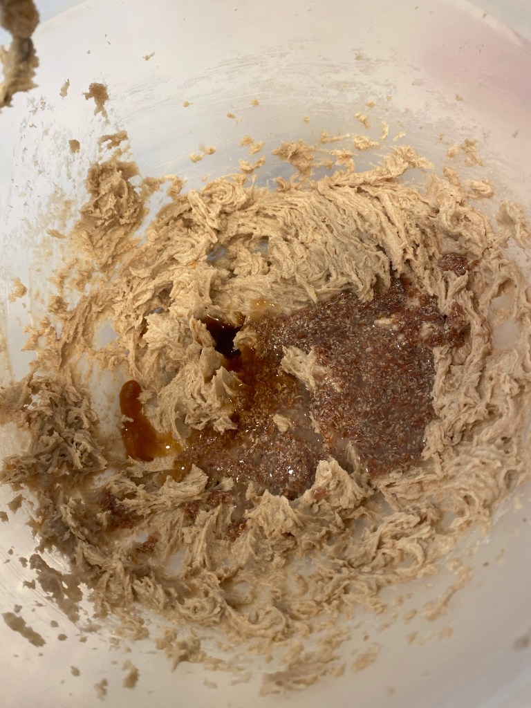 It’s important to make sure the vegan butter and brown sugar are beat long enough, to incorporate air into the mixture and to make sure there’s no small chunks of butter left.