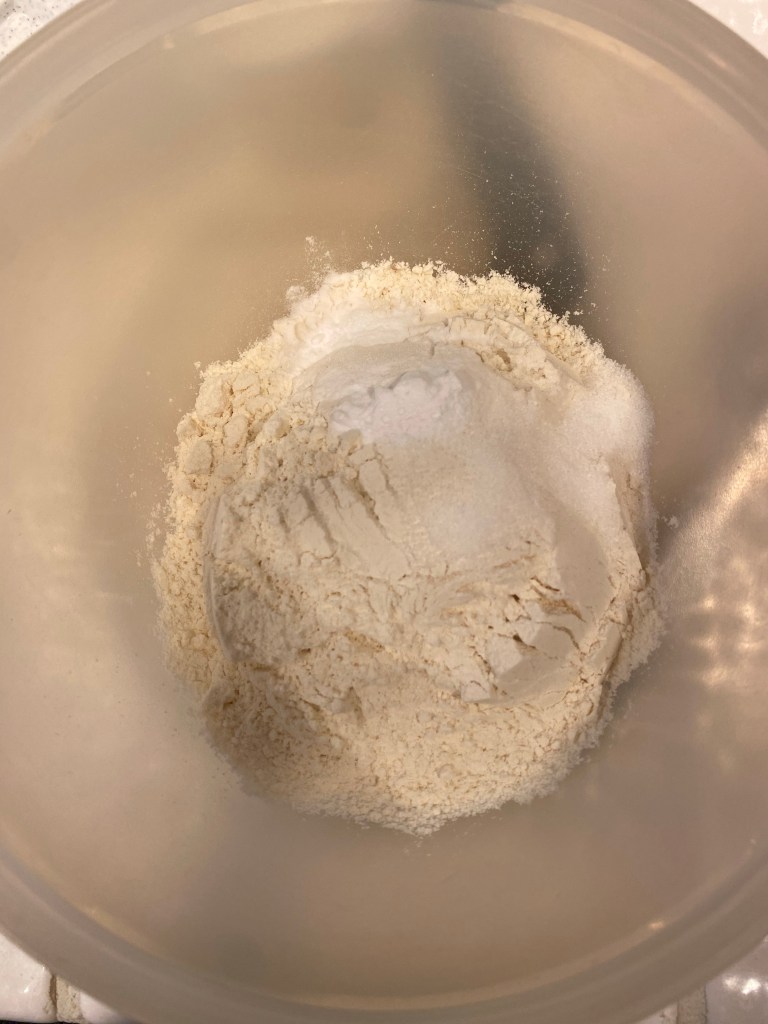 Once the flax egg and vanilla extract are beat into the vegan butter mixture, you can set it aside while you whisk together the dry ingredients! Just whisk together the flour, baking soda, and salt!