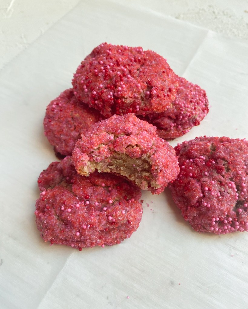 These strawberry cookies are the ones that dreams are made of, with an amazing soft and slightly chewy texture, covered in fun pink sprinkles that make them a vibrant color and add a perfect crunch! They can be made with frozen or fresh strawberries, so they can be a year round treat!
