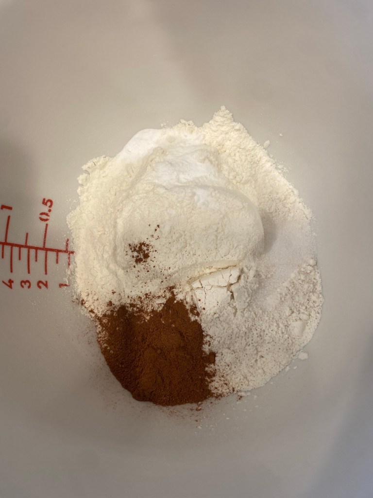 1. Preheat the oven to 350F and line a muffin tin with 12 paper liners. In a medium bowl, whisk together the flour, baking soda, salt and cinnamon.