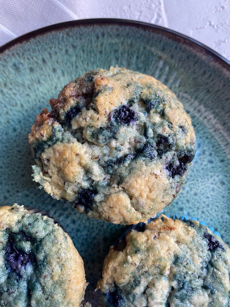 We use both baking powder and baking soda to keep the muffins fluffy and soft! Then, fold in the wild blueberries! I buy frozen wild blueberries, but you can use any type of fresh or frozen blueberries you would like!